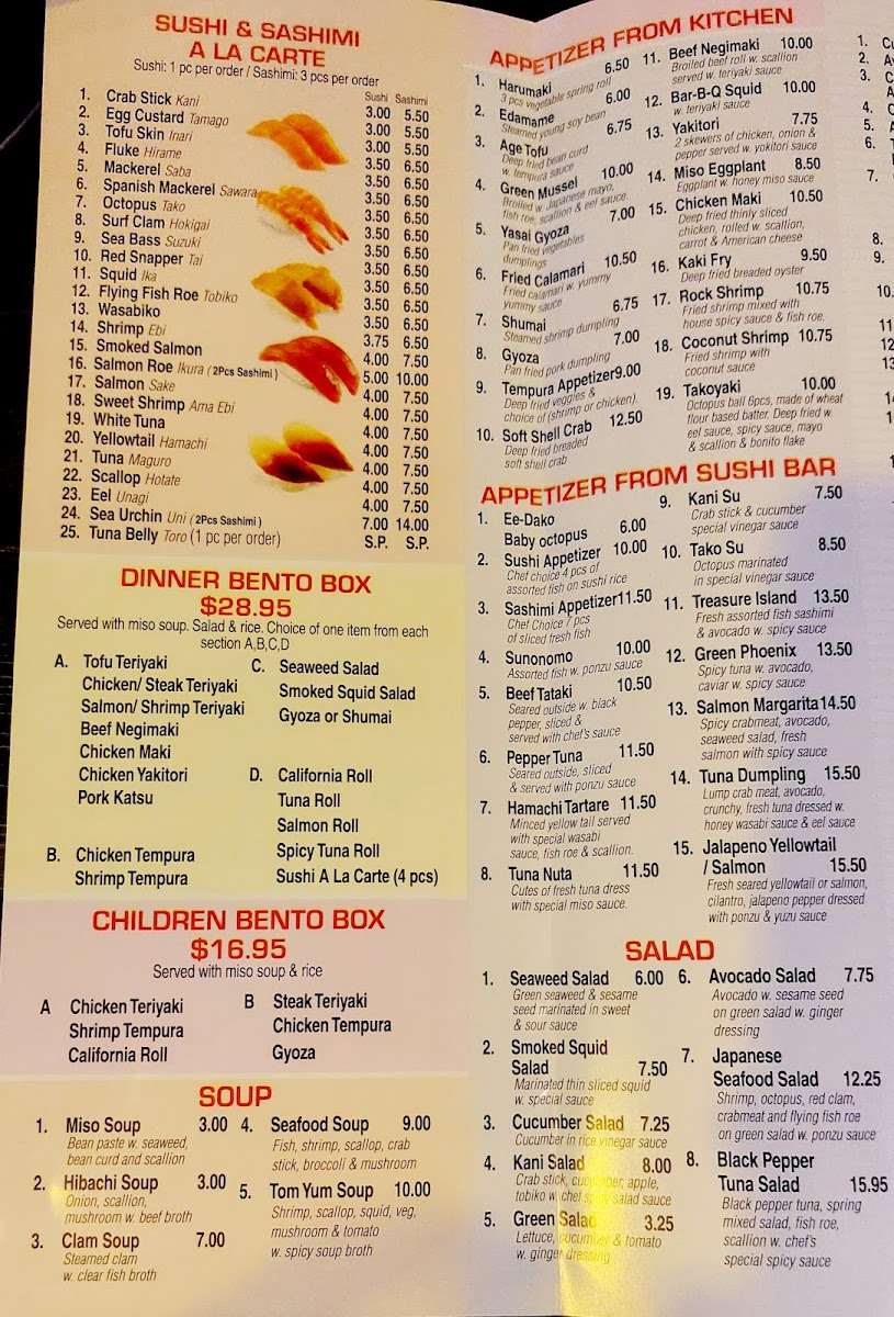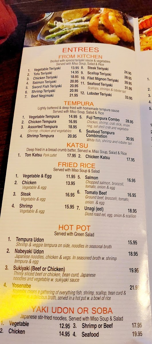 Manahawkin Fuji72 Hibachi & Sushi Menu