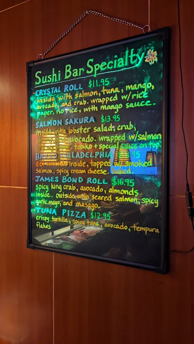 Crab meat,shrimp,asparagus w.baked spicy scalop,special hot sauce & scallion