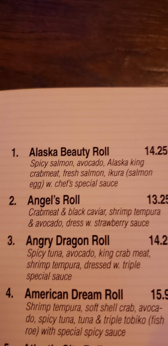 Spicy yellowtail, avocado tempura lobster touch with wasabi sauce