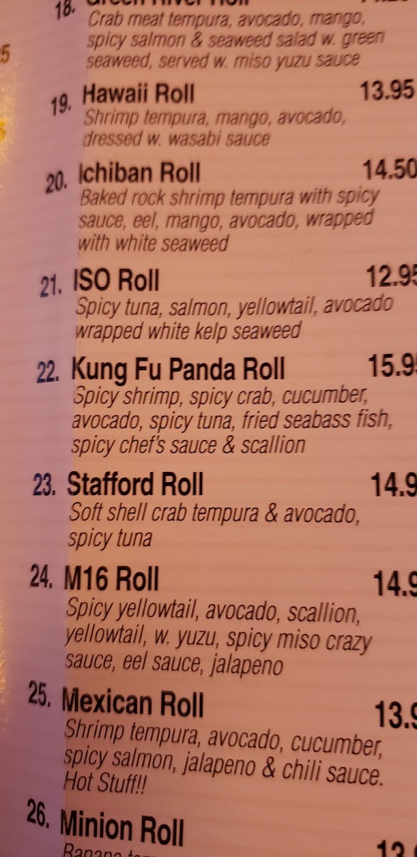 Shrimp tempura, mango avocado, dressed w.wasabi sauce
